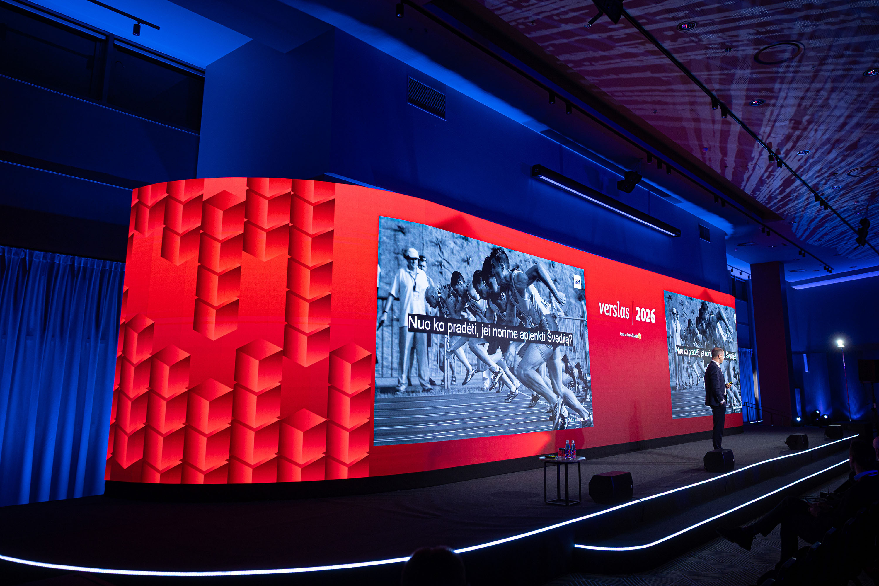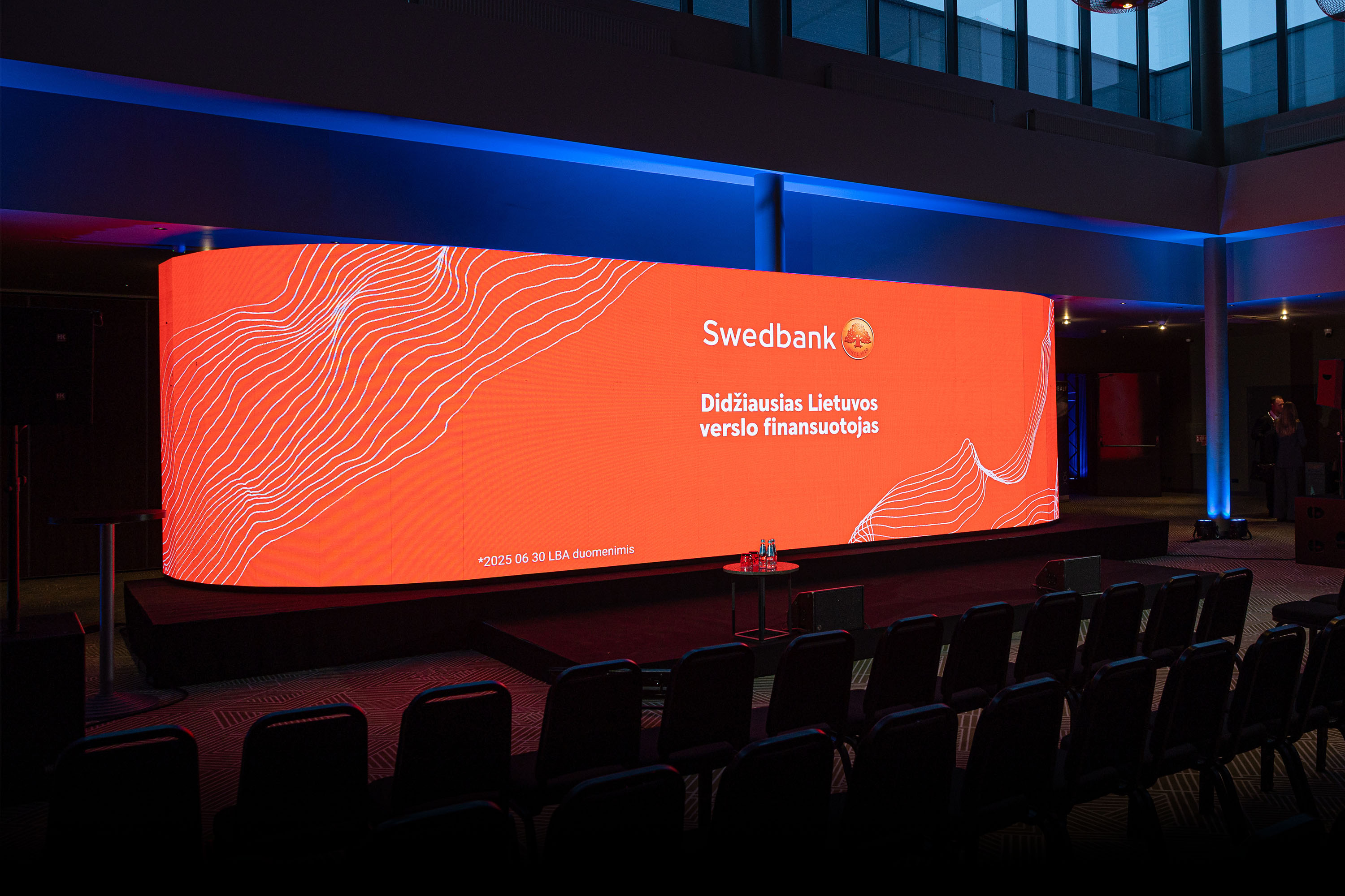 Vienoje didžiausių ir svarbiausių „Verslo žinių“ konferencijų „Verslas 2026“ susitiko stipriausi šalies verslai ir lyderiai, dalijęsi patirtimis, įžvalgomis ir ateities vizijomis, o renginio metu buvo pagerbti bei apdovanoti geriausi metų CEO. Konferencijos scenografija iš tiesų paliko stiprų įspūdį – kelios salės buvo apjungtos į vientisą vizualinę idėją, kurioje panaudoti naujausi P2 UNIQ.UE LED ekranai, o subtilus, tačiau didelę emocinę įtaką kuriantis apšvietimo dizainas sustiprino bendrą atmosferą. Renginyje buvo sumontuota ir valdoma profesionali, aukščiausius standartus atitinkanti garso sistema, ypatingą dėmesį skiriant garso kokybei ir aiškumui sudėtingose akustinėse erdvėse. Tai buvo renginys, kuriame konferencijos turinys ir vizualinė bei techninė realizacija atitiko aukščiausius rinkos standartus bei klientų ir žiūrovų lūkesčius.